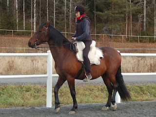 Våra nya hyresvärdar höll på att flytta in i på gården så vi stökade undan lite i stallet och red sedan ut den långa skogsrundan och trampade upp stigen genom den nu snötäckta skogen.